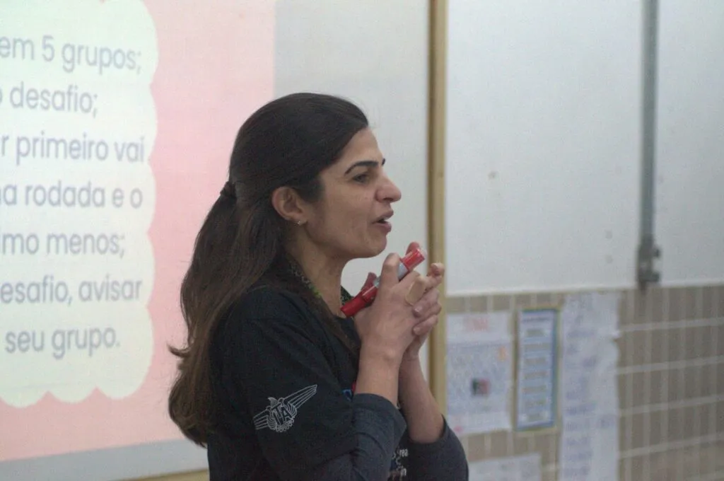 Flavia Fernandes Rubino, professora do Fundamental II da escola Áurea Cantinho Rodrigues (São José dos Campos), participou com o projeto Estação do Conhecimento. Ela leciona Matemática há oito anos.