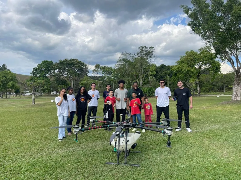 Na parte da tarde, a diversão ficou um pouco na piscina e depois para um momento surpresa, quando as crianças e jovens ouviram de Emílio e de Manoel explicações sobre o uso dos vants para aplicação de defensivos agrícolas. No grande momento final, puderam fazer o voo.