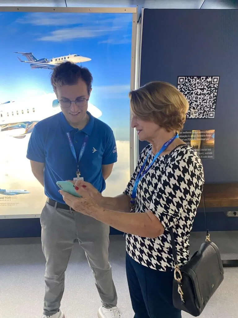 A visita começou com a ida até o centro histórico, onde havia painéis com a linha do tempo sobre a história de uma das mais importantes indústrias aéreas do mundo e com a evolução das aeronaves militares, comerciais e carro voador produzidos pela empresa. Na sequência foi possível conhecer o centro de entregas e a linha híbrida de montagem das aeronaves E1 e E2. Para alguns, a tarde memorável foi momento para matar a saudade da época em que integravam o time. Para outros, a realização do sonho de conhecer a empresa.