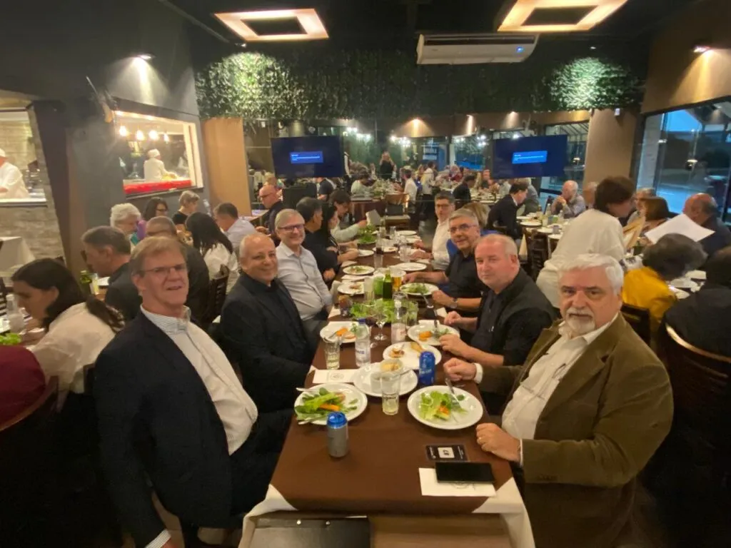 A comemoração festiva foi realizada à noite, num grande encontro entre associados e convidados – todos parceiros do INVOZ ao longo do ano –, que puderam se reunir em um restaurante da cidade. Os presentes foram recepcionados pelo presidente de honra do INVOZ, Manoel Oliveira; pela presidente executiva, Neide Pereira Pinto, e pelo presidente do Conselho, Emílio Matsuo. Na oportunidade, Manoel e Emílio falaram da importância da associação, que é preservar o legado do fundador Ozires Silva, e sobre o desejo de que o INVOZ continue cada vez mais fortalecido para esse objetivo, sempre com o apoio dos associados.