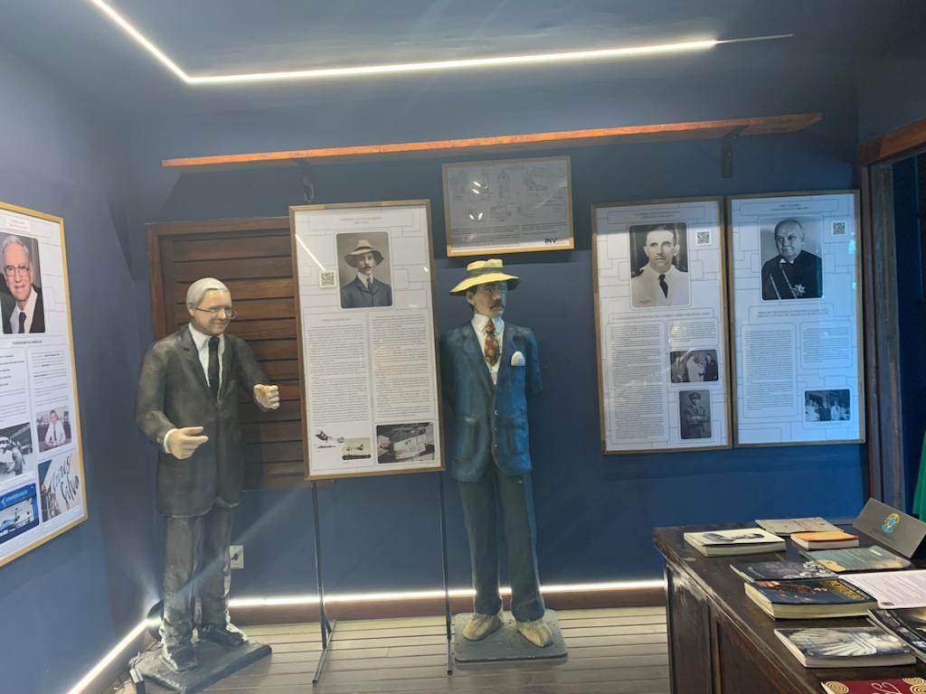 Representantes do INVOZ participam da inauguração das estátuas de Ozires Silva e Santos Dumont, uma preservação da história e cultura da aviação brasileira no museu em Guaramiranga (CE)