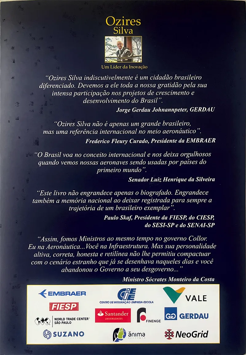 Um dos maiores exemplos de empreendedorismo do Brasil ganha uma biografia: Ozires Silva – Um líder na inovação. De autoria de Décio Fischetti, a obra narra os sonhos, os desafios e as realizações do fundador da Embraer. Com o céu como limite, Ozires Silva sempre teve idéias inovadoras, a frente de seu tempo. “Ainda major da Força Aérea Brasileira, lutou contra a descrença de muitos ao idealizar a fundação de uma fábrica brasileira de aviões, quando a industrialização no Brasil ainda era incipiente. Com persistência, crença em seu sonho e a sorte que só quem não perde uma oportunidade tem, conseguiu apoio governamental para fundar a Embraer, hoje referência mundial em aviação”, lembra Luiz Gonzaga Bertelli, presidente Executivo do Centro de Integração Empresa-Escola (CIEE).