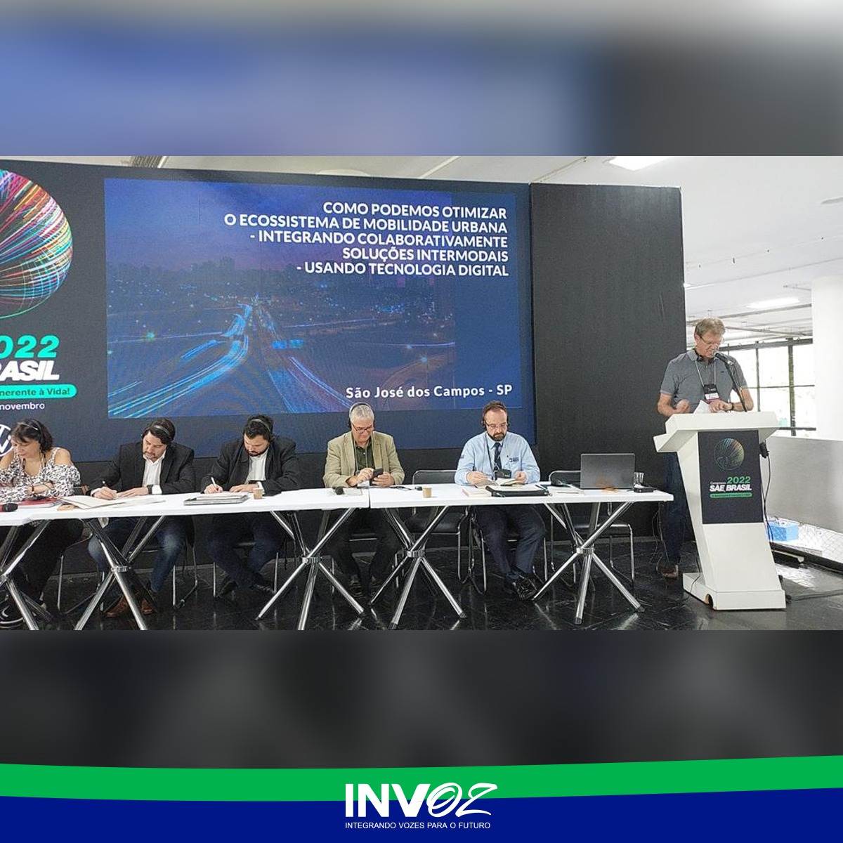 On November 26th, another, and now face-to-face Pitch, was held at the 29th International Mobility Technology Congress and Exhibition closure, promoted by SAE Brasil, at the Bienal pavilion, at Ibirapuera Park, in São Paulo. São José dos Campos won again. There were present at this step, Luís Pasquotto (leader and presenter of the project), Emílio Kazunoli, Col. Ricardo Roquetti, both from INVOZ, and Píer Paulo Cortopassi, CEO of startup Emoov. The mayor of São José dos Campos, Anderson Farias; professor Antônio Chaves, from Unifesp; Luiz Carvalho, from the Technological Park of São José dos Campos, and André Almeida, from the startup Dom Rock, participated on line..